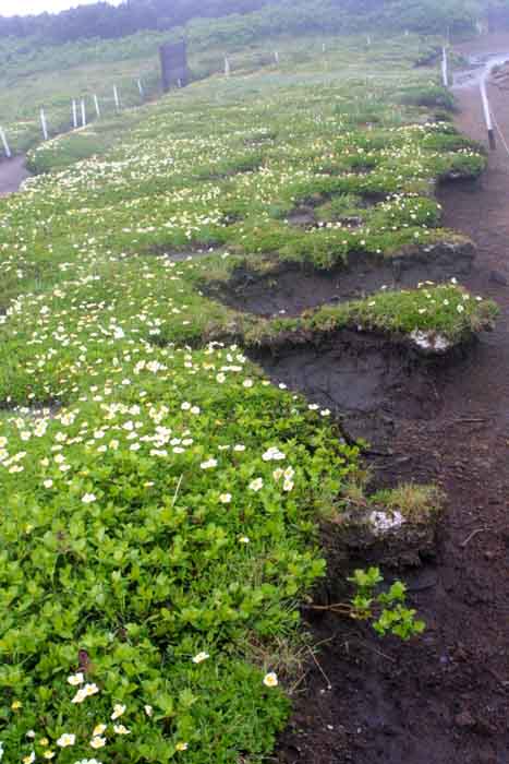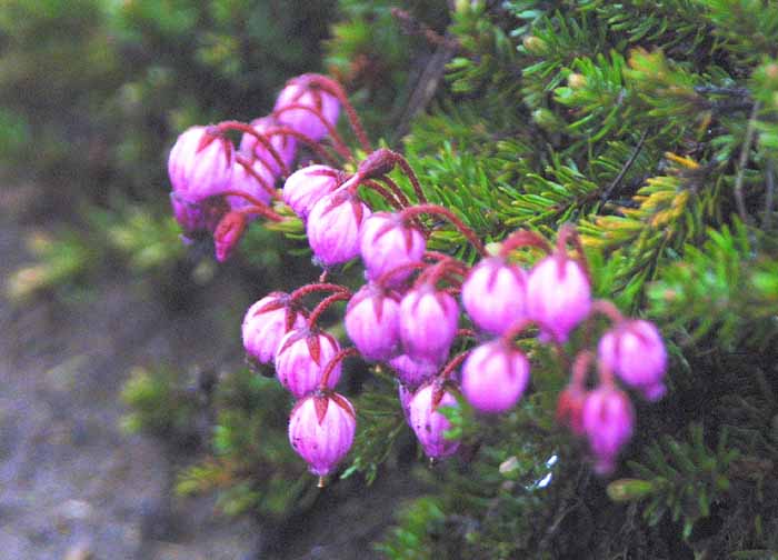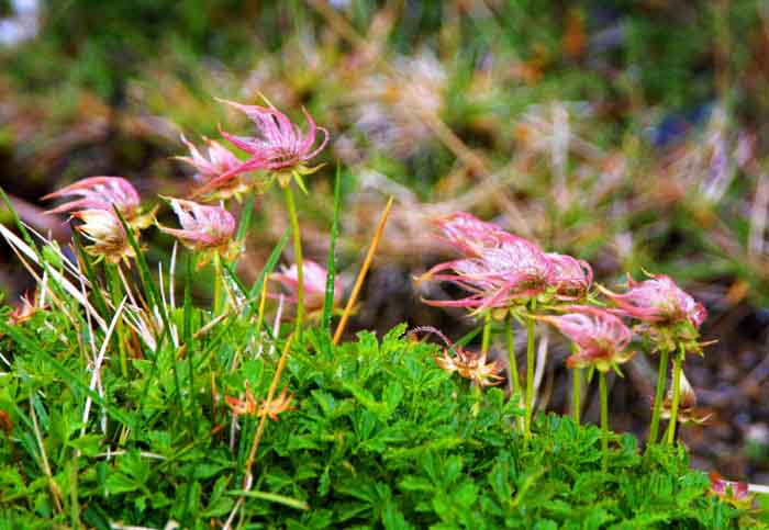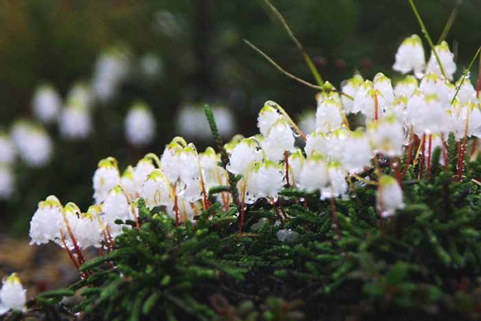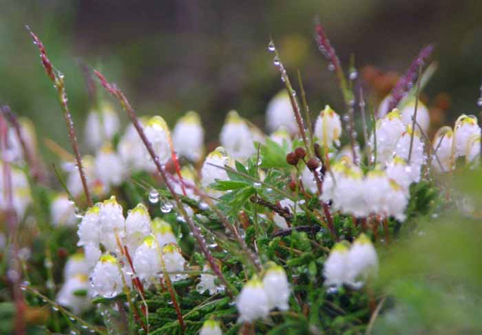 | 雨にぬれたイワヒゲ | 強風で傷んだチングルマ | エゾノツガザクラ | |