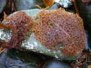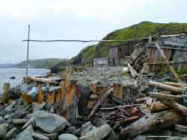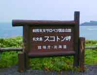 | 今日が礼文島最後の日。 朝食後2泊3日の支払いを終え、弁当を受け取り自室で出発の準備。 先ずCD−RにPCの画像(礼文島:#1と#2日分)を焼きつけマイクロドライブの画像を消去。 9時ごろより大型ザックに本日の「スコトン岬:4時間コース(花岬コース)」以外の荷物を纏めてパック。予約した民宿の車でスコトン岬まで送ってもらう。 天候は今日もハッキリせず、風は強い(この程度は礼文島北部では普通だそうだ)のでヤッケ無しでは寒い。 10時過ぎに観光客の疎らな「スコトン岬」で下車。 風が強く帽子も不安定。 岬から1・5キロの「トド島」はよく見える方だ。 「スコトン岬」の観光客用看板の先を海岸に下りてごろごろした丸い石に打ち上げられた海藻・昆布が散在していた。 以前の番屋の後がしのばれる基礎幾つか残り今は、唯一の番屋がひっそりとの残っていた。 |