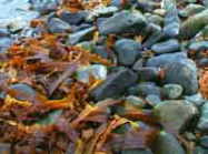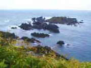 | 岬の先端の展望台 | 展望台下の海岸:海藻・小さい昆布等 | トド島を望む | |