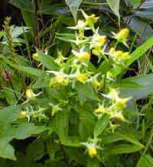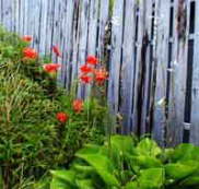 鮑古丹の古い無人小屋の風防板塀の陰に真っ赤な「クルマユリ」と白い花が咲いていた。 イブキトラノオに近い「チシマワレモコウ」が群生したところもある。 |