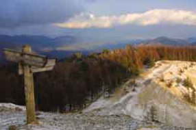 | カメラを手に再度屋外に出て撮影に夢中になるも「手の悴み」で思う様に撮影出来ない。 「小雲取山」方面にさす弱い夕陽の陰影が平地では見れない光景で広角・望遠双方で何十枚か撮影して寒さの限界を悟り再度小屋に引き込む。 確実に天候は改善の方向らしい。 明日の晴天を期待する。  夕食は「レトルトのご飯」「カレー」「コーンビーフ」「ハム」それにデザートとして「梨」。 腹一杯なった事で体中に温かさが戻る。 スープ、コーヒーを飲んで「山小屋日誌」を読みながら、明るさが残っている間に自分の感謝の気持ちと感想を2ページにわたり書き込んだ。 持ち合わせている衣類全部を濡れたシャツとズボンの上に着込み、シュラフとシュラフカバーの間に「新聞紙」を挟み、シュラフ・インナーとの組み合わせで午後7時半頃寝る準備に入る。 今日の登山は「屋久島の雨」を想定しての決行だったが、反省材料は多い * 春先の雨は恐ろしい:特に寒冷前線には要注意 ―> ミゾレ、雪、吹雪にもなる * 雨天時=低温時の体力の消耗は予想外に大きい * 雨では「全身が濡れる」想定での「着替え一式」の持参 * 新聞紙の効用 * ゴアー製品「上下の雨具」「手袋」の耐水性を体験出来たこと シュラフに包まり震えながらの反省材料を思いめぐらしながら、眠りにつくも夜中に何度も「ねずみ」の襲来のガサゴソ音=「板の上の食料」に悩まされた。 やはり「ザック」に収納すべきだった。徐々に体も温まり頭までかぶった羽毛のシュラフ(マイナス:15度C用)のお陰で夜中にはファスナーを潤める位の性能を確認出来た。 総歩数=11,500歩 |