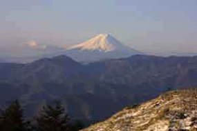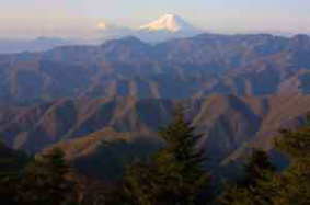| < 早朝(7時頃)の富士山の眺め:雲取山山頂避難小屋前にて > | ||