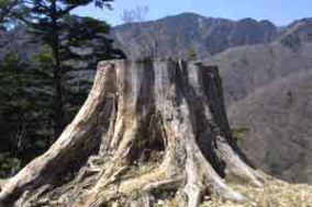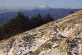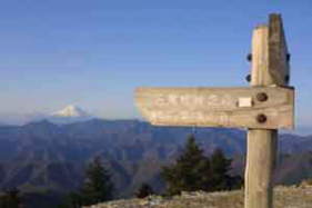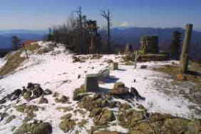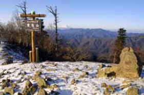 | <避難小屋〜山頂間の倒木> | <雲取山山頂三角点・他の施設> | <三角点からの富士山方面の展望> |