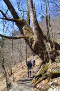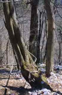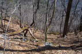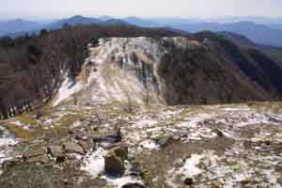 | <山頂から奥多摩小屋方面を望む> | <下山直前:避難小屋横にて> | <三条谷の広葉樹林帯> |