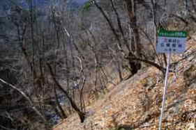 | 8時30分頃、山小屋に戻りパッキングを終え下山準備を整えて再度外に出た時、鴨沢コースから来た若者5人に出会う。 奥多摩小屋か七つ石小屋から来たらしい。 山小屋側の小ピークで写真を撮って貰う。 9時10分、三条ダルミに向けて下山開始直後、急傾斜面で大学山岳部員と見られる5名のパーティーに会う。 重装備で数日間の縦走を計画しているとの返事。 昨日よりも硬く滑りやすい雪を被ったアイスバーンを避けて登山路を外し熊笹の中を選んで注意深く下山。 9時35分「三条ダルミ」に到着。 稜線を外れ風も当たらぬため「ウインドヤッケ」を脱ぎ、小休止して、水、間食を補給。 9時50分三条の湯に向け下山開始。 |