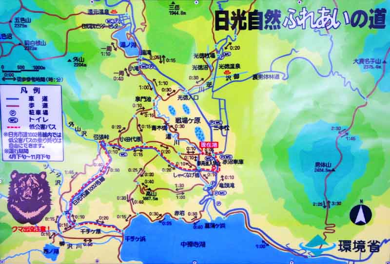 | 傾斜面をスライダーで遊ぶ親子 | 小田代原展望台:後方は太郎山 | |