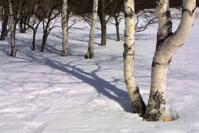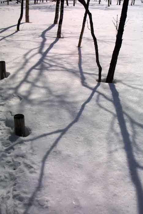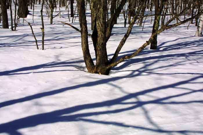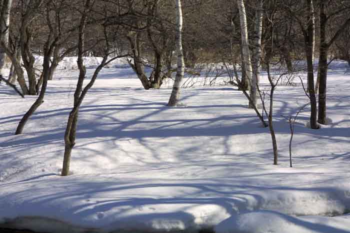 | 小田代原のミズナラ・シラカバ | 雪面の木陰の魅力:冬の景色の点景 | |